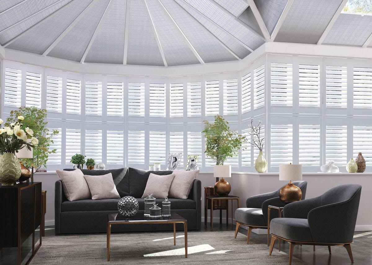 Our electric blinds are brilliant for hard to reach spaces like conservatory roofs. They work with a simple wall switch or remote and they're smart compatible too, so you can operate them with an app on your phone, or using voice control through your Alexa or Google Assistant.