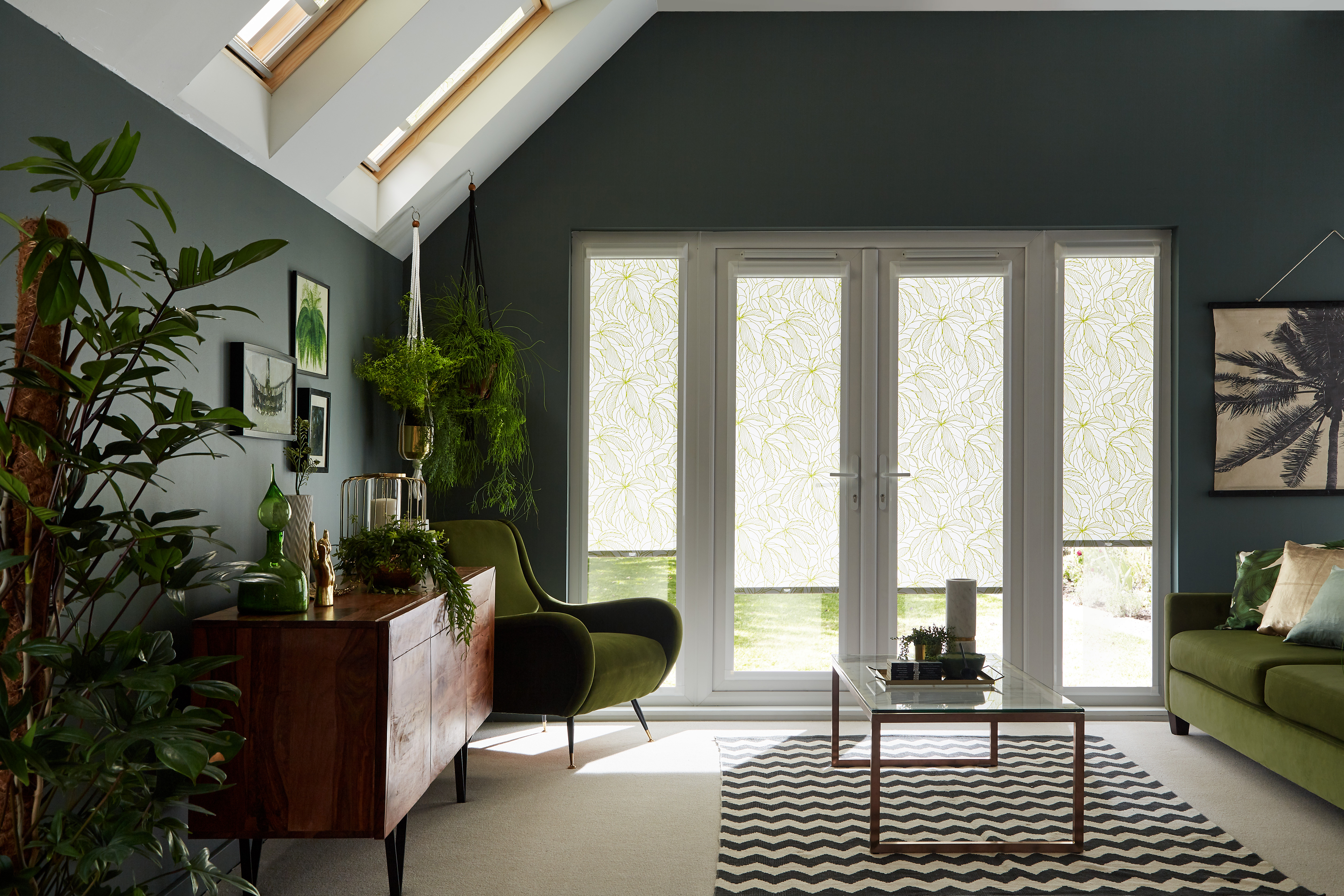 Roller blinds are a stylish and practical choice for French doors.