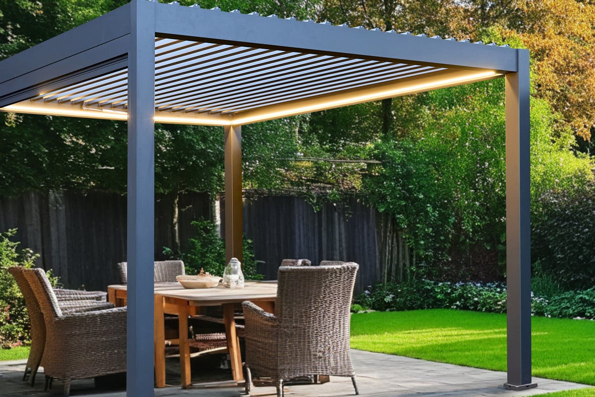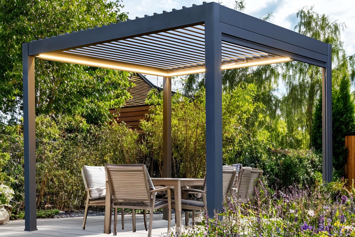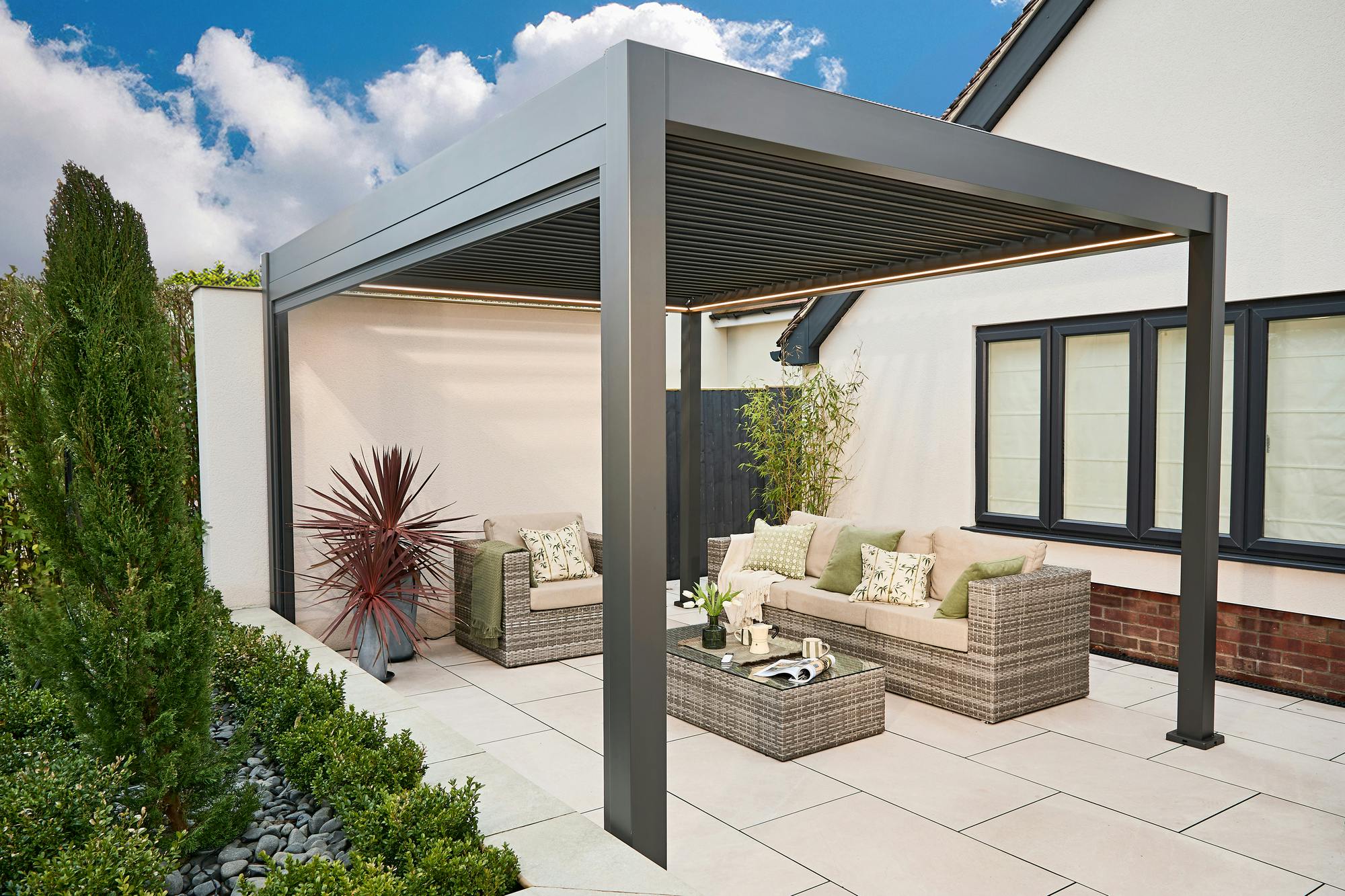 Think of pergolas and you probably picture a small wooden structure with cross beams and lattice work. But pergolas have had an upgrade and they’re now a high-tech addition to your garden.
