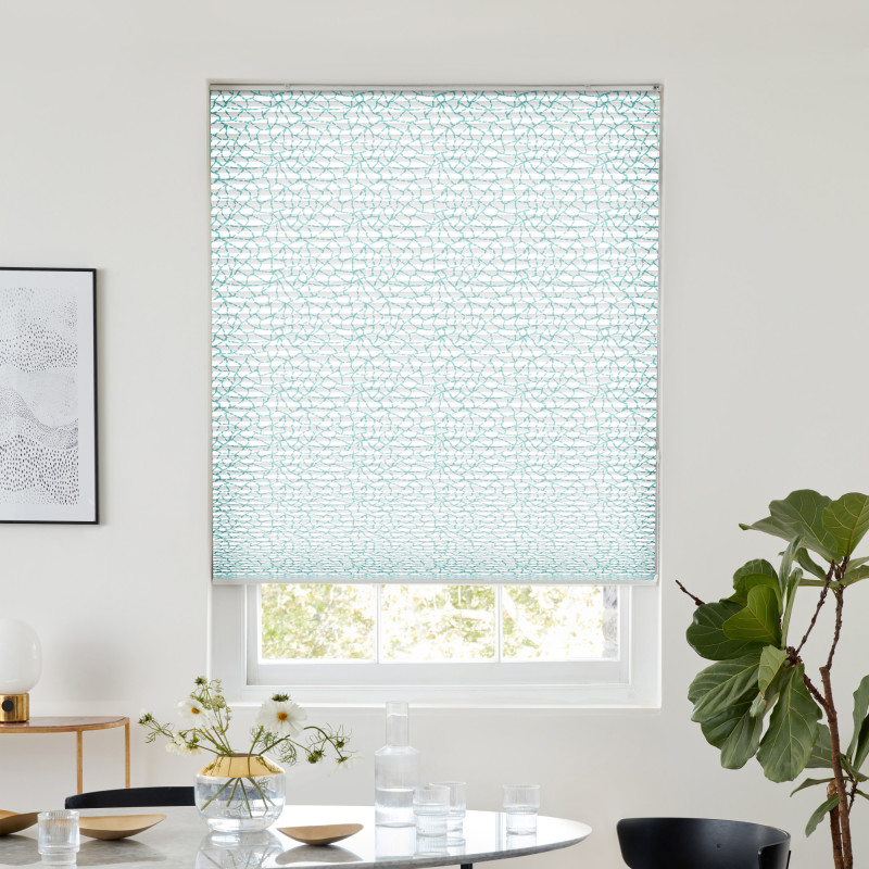 Darwin Teal Pleated blind brings a sense of quiet energy to your space. Its layered teal design features a web of irregular lines that scatter across the surface, creating a fragmented texture that feels both natural and modern. The interplay of deeper teal and softer highlights gives the fabric a subtle depth, like light catching on textured glass or worn stone. Made from 100% recycled polyester, this blind is a sustainable choice, while the solar reflective coating helps reduce heat and glare, making it ideal for sunlit rooms like kitchens, garden rooms, or conservatories. Whether you're looking to add a hint of colour to a neutral scheme or complement deeper tones in your décor, Darwin Teal offers a versatile, understated way to bring texture and tone to your windows.