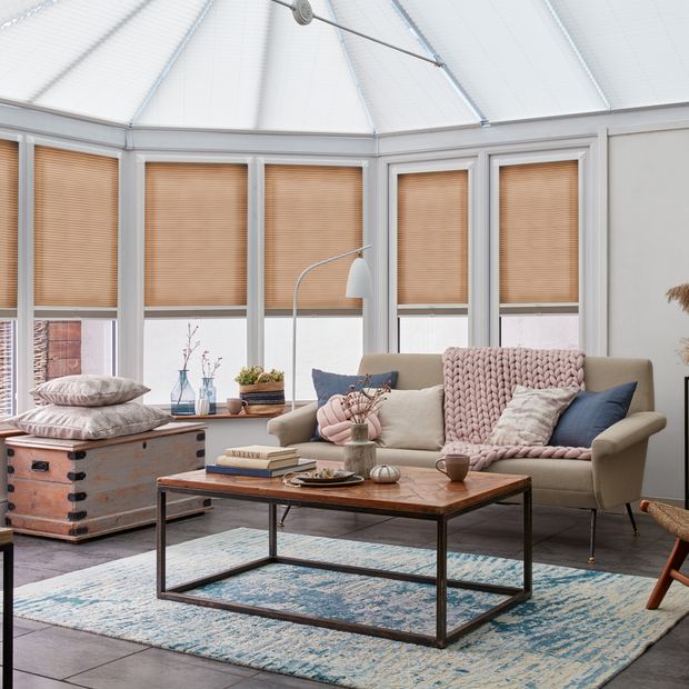 Our range of Duette® blinds are cleverly designed to help to keep the temperature down in the warmer summer months while retaining the heat once it starts to get cooler. Duette® blinds are ideal for the roof of your conservatory as they can be made to fit the different shaped windows. For the sides you can opt for more Duette® blinds in a coordinating or contrasting colour or choose from our full range of blind types.