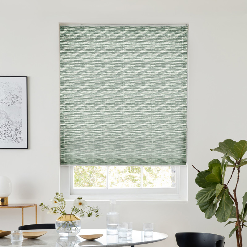 Step into the calm of the woodland with Dune Forest, a rich forest green Pleated blind that brings the grounding beauty of nature indoors. Inspired by the shifting textures of wind-swept dunes, the subtle pattern creates a sense of movement, soft streaks that fade like mist through trees, adding depth without overwhelming your space. This shade of green is deep and earthy, yet surprisingly adaptable. It catches the light in intriguing ways, sometimes appearing mossy and muted, other times bold and vibrant, depending on the time of day and the colours around it. Part of our House Beautiful range, it's made from 100% recycled polyester, this blind doesn’t just look natural, it is naturally conscious. It’s a choice that reflects a love for the environment, blending sustainability with style in a way that feels effortless.