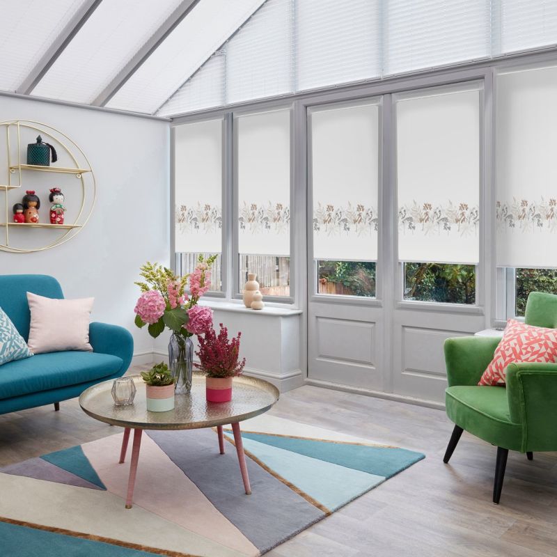 A blossoming array of soft neutral colours make up the delicate detailed pattern of the Eden Cocoa Roller blind. In a watercolour wash of leafy blooms, this blind would make a beautiful addition to room filled with natural materials and greenery. The combination of neutrals in several different colourways from cream, to brown to grey makes for an engaging and charming space, that will feel warm in the winter and cool in the summer. Thanks to it's moisture resistant fabric, Eden Cocoa would make a great addition to a kitchen or bathroom, but will look just as wonderful in a cosy living space. Add a touch of colour to this neutral palette by incorporating throws A knitted blanket tossed over a patterned chair or the arm of the couch adds colour comfort, texture, and style to your home.