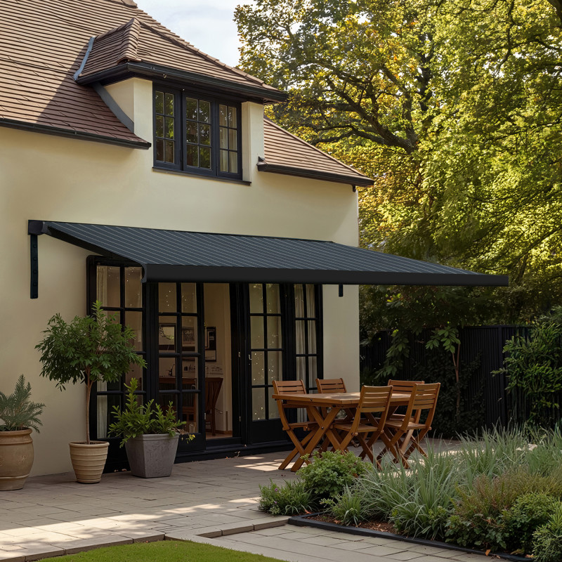 Our fabrics undergo a specialist ‘Cleanguard’ treatment, which helps the fabric resist dirt, eliminating the need for regular cleaning. It should also be noted that your awning or pergola awning should only be open in good weather conditions, reducing the chances of it becoming dirty. However, should you need to, you can use a soft bristled brush to loosen and remove any dirt, and any stubborn marks can be spot cleaned with a small amount of soapy water. Please do not attempt to clean your awning or pergola awning unless it is safe for you to do so.