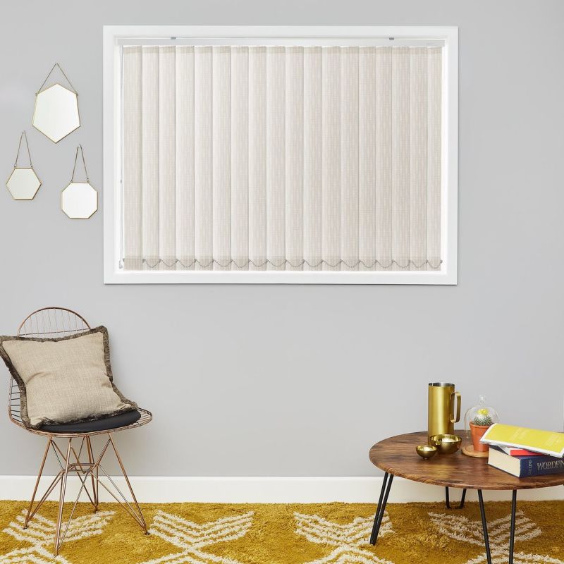 Encompass your room with an airy feel by introducing Linara Calico to your windows, perfect for a room with naturally low light levels and a great option for opening up your room, creating the illusion of a bigger space. The lines in a Vertical blind also help to create the illusion of height in your windows so these are a fantastic option for making a small window seem larger than they really are. The textured cream pattern that runs down the louvres of this fabric enhances this effect even further, and gives an added interest to an otherwise simple blind. The soft cream base of this blind makes it a classic and extremely versatile option for a range of spaces, blending with a huge variety of colour schemes.