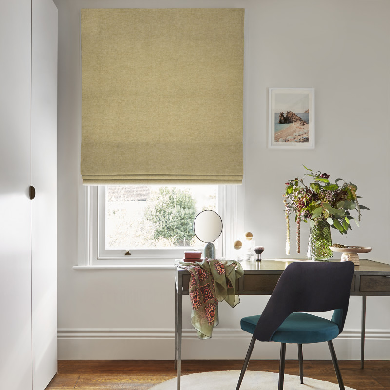 If you’re looking for a bold colour for your next Roman blind, then we think Pique Ochre will definitely catch your eye. Crafted from quality chenille fabric it’s really tactile, lush and velvety and the strength of the colour gives it a burnished glow, full of warmth and life. But there’s a lightness to it too, so while it’s undeniably striking it’s not overwhelming, even at a smaller window, like a hallway or utility room, and we think it’s a colour that will lift your spirits when you get home from a hard day at work or while doing household chores!