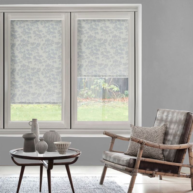 The Polly range of fabrics are a beautiful addition to our Roller blind collection. First up is Polly Bluebell. The backdrop to this pattern is an off-white that takes on the hue of the print, which in this case is a smoky blue-grey. The print features a repeat scatter pattern of foliage, like pressed sprigs. A gentle Roller blind that will bring a little depth to a living room, colour to tiled bathrooms or kitchens or a simple pattern to any room in your home. Whites and creams will make the pattern more prominent, the former giving a cooler tone, the latter taking the heat up a notch or two, or team it with blue accents for a co-ordinated look.