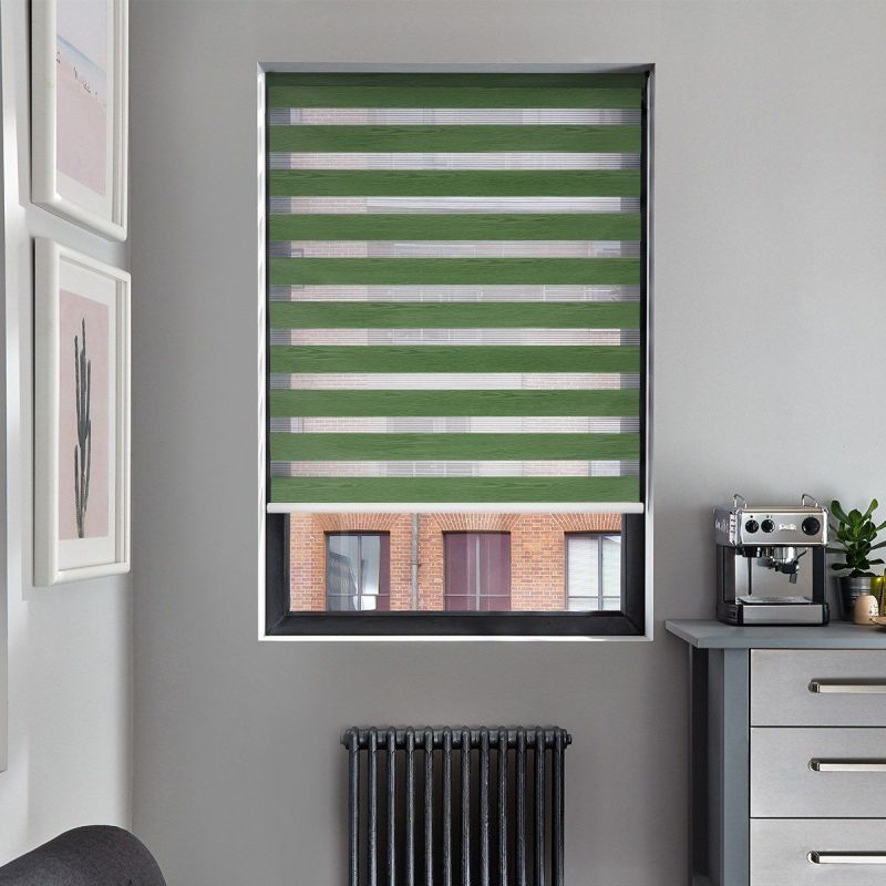 In a refreshing shade of green, this Day and Night blind will bring a feel of the British countryside into your home. Giving a nod to nature while keeping things modern and upbeat, the delicate hue of Prism Green will fill your room with a reassuring sense of calm, creating the perfect space for you to relax. Pair with crisp white walls to retain the feeling of summer all year round, or for a fresh, contemporary look try introducing chrome and black tones to the room. Day and Night blinds combine movable sheer and opaque panels to give you greater flexibility over light and privacy. They can be operated with a standard pull-cord or chain, or via remote control with our clever motorisation.
