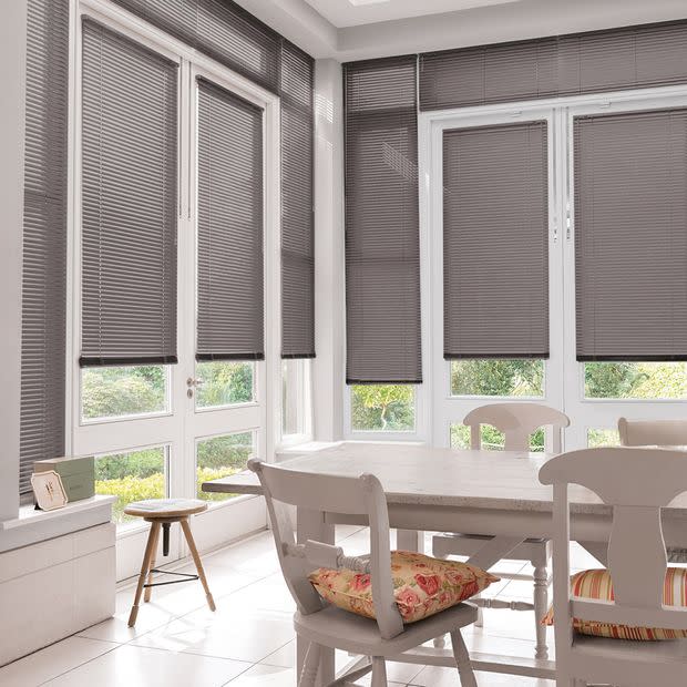 Charcoal by name and certainly charcoal by design. It might describe a raw carbon residue, but on first glance, few would doubt that the Spectrum Charcoal Grey Venetian blind defines contemporary living. The matt finish aids this sensation although things can be toned-down via a tilt of the aluminium slats, which can allow slithers of light to caress the blind and creep into a room. This dark grey Venetian blind will tie in wonderfully with other shades of grey, or can combine with white to provide a contrasting, but neutral, decor scheme. It is also dark enough to complement more vibrant shades, with hot pink, green and orange all being possibilities.